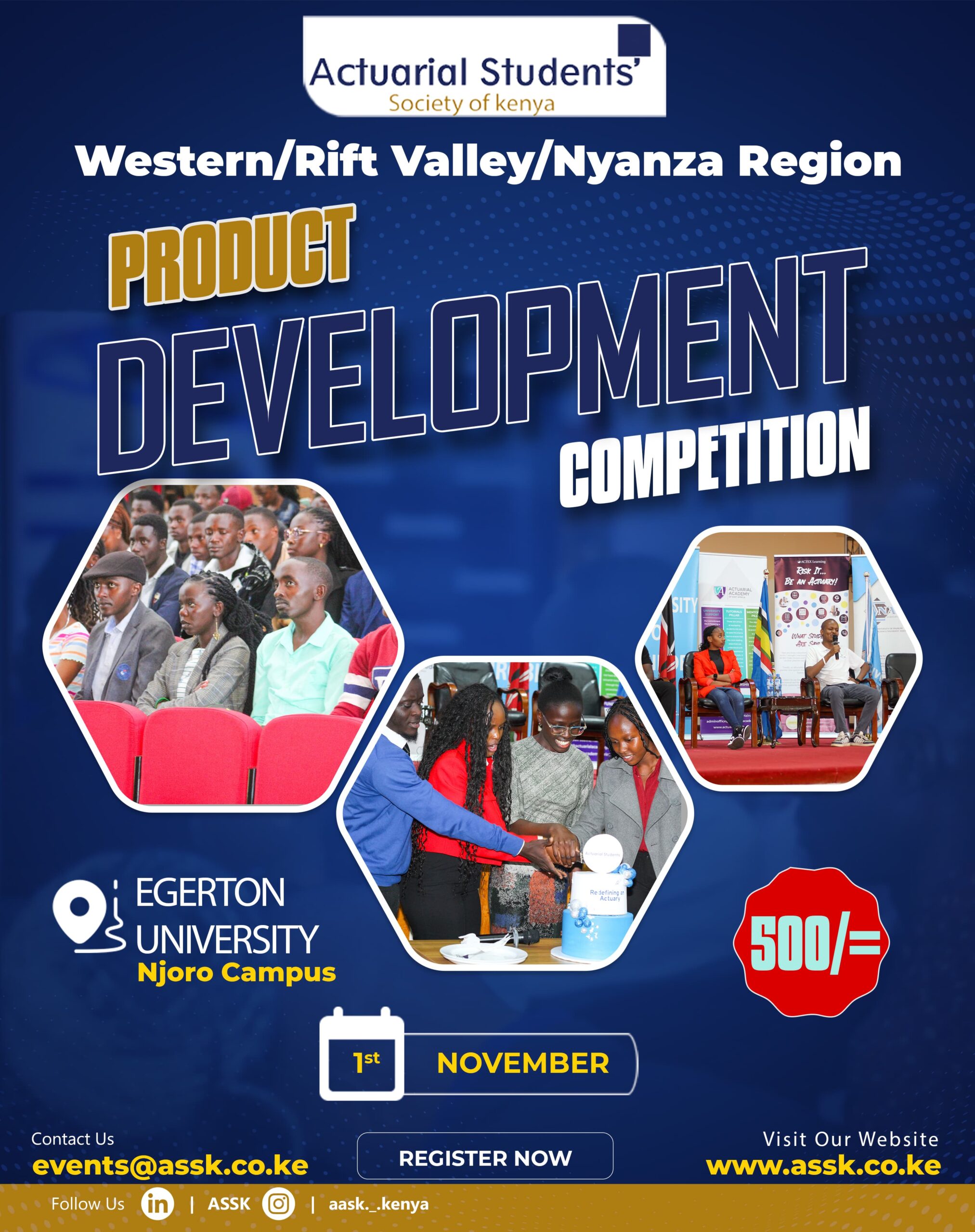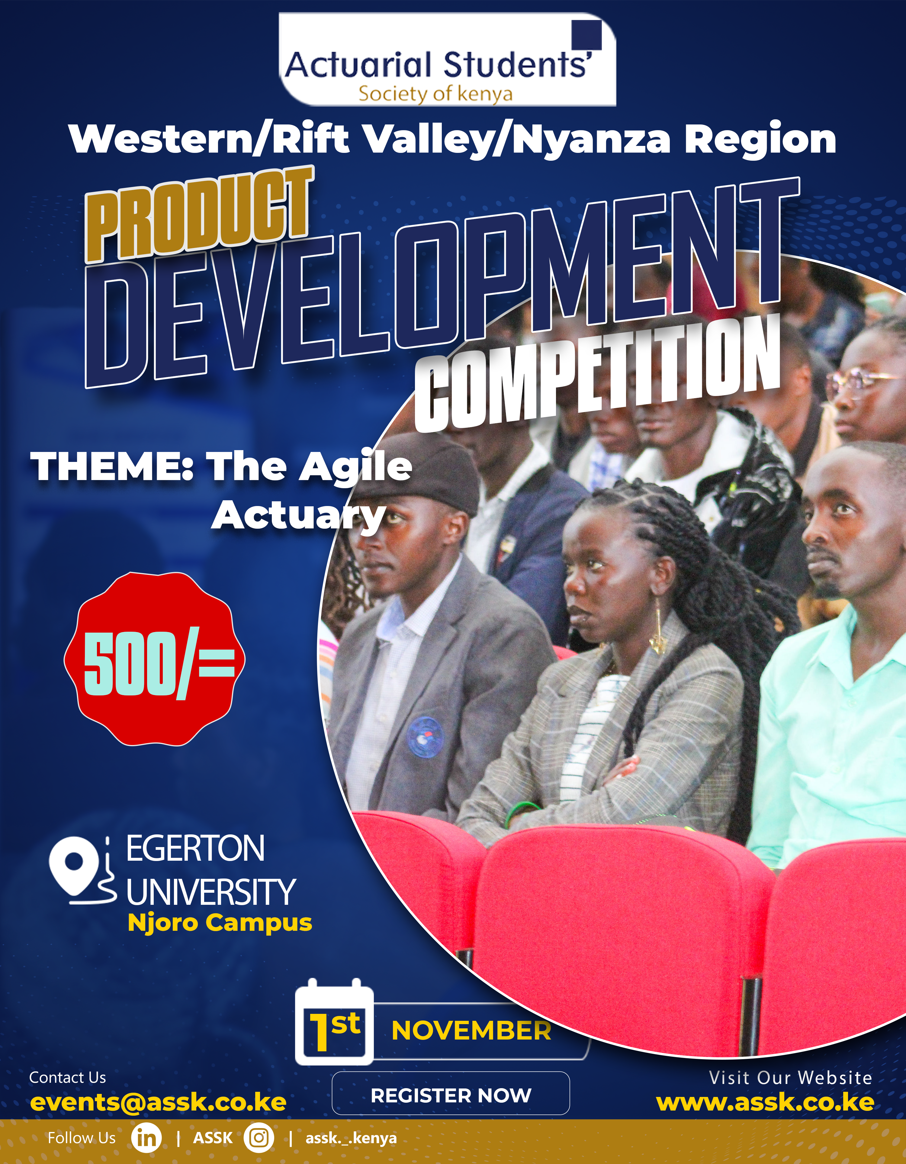 We are thrilled to announce that the Western Region Product Development Competition (PDC) will be taking place at Egerton University on 1st November 2024. Under the theme “The Agile Actuary,” this event challenges students to showcase their innovation and creativity through research papers and product designs.